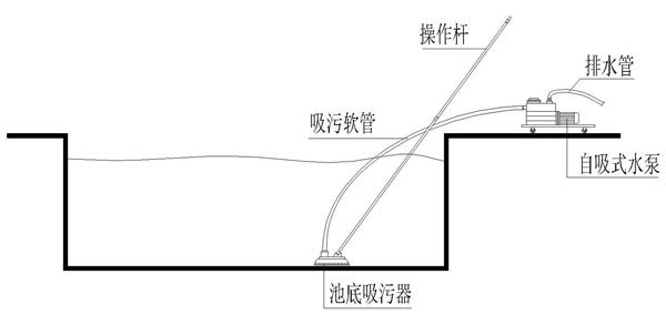 ⑤吸污采用吸污小推車,用池底吸污器吸污,操作簡便,勞動強度較低;