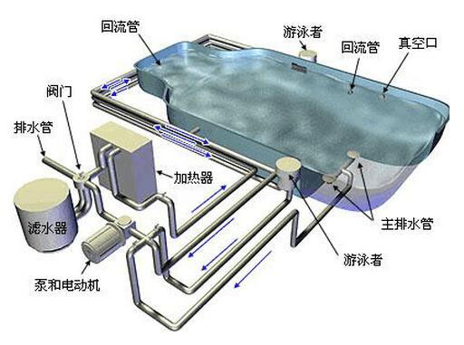 游泳池水處理設(shè)備的基本工作原理是持續(xù)不斷地循環(huán)抽水:從泳池抽到過(guò)濾和化學(xué)處理系統(tǒng),然后再送回泳池。這樣,抽吸系統(tǒng)可以使泳池中的水較為干凈,基本無(wú)污泥、垃圾和細(xì)菌。一些泳池還有加熱器,可以使水溫保持恒定。