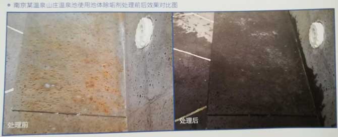 大面積池體著色或結垢:將本品按照10克/噸的用量投入池內,保持池水pH6.0~6.5,維持6~8小時,可解決池體著色與結垢問題。