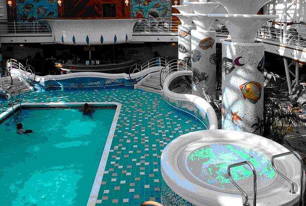 【游泳池設備是建立在室內】